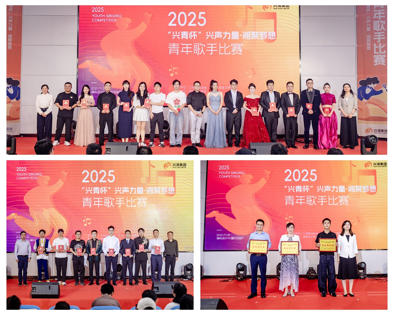 湖南設(shè)計(jì)青樂團(tuán)組合(譚子俊、王傲梅麗、左淳瑩、宋鑫、凌晨)、湖南低空袁鑾玲、集團(tuán)總部興湘Young組合(歐陽喆浩、唐帥)、湖南設(shè)計(jì)阡陌之聲組合(李歡、金菲、付業(yè)偉、劉佑杰)、興湘資產(chǎn)興耀和聲組合(湯泳、張成、歐陽宇星)、湘安實(shí)業(yè)劉恒、粉冶中心晨熙起振組合(張振、胡煕涓)獲“十佳青年歌手獎(jiǎng)”,華升股份陳鑫星等8組選手獲優(yōu)秀獎(jiǎng)。湖南設(shè)計(jì)、湖南人才、興湘資產(chǎn)3家單位獲“最佳組織獎(jiǎng)”。